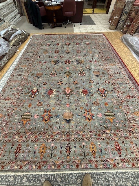 Humza Jafri sold this customer a beautiful Tabriz rug with more modern colors. The rug is 100% hand knotted and was made in Pakistan The rug is a 10x14 living room rug. The rug took about a year and half to make by hand.