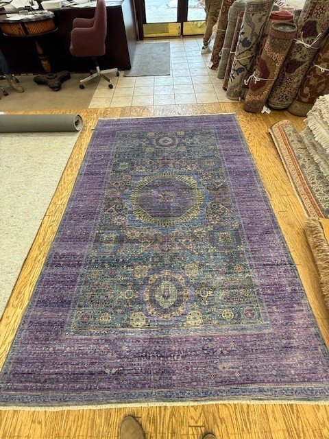 Humza Jafri sold this customer a modern style 6x9 Mamlouk rug. The rug is a very vivid rug with an interplay of purple, yellow, blue, and lime accents. The rug was made in Pakistan and is a throwback to the centuries old Mamlouk pattern. This rug is 100% hand knotted and was made with vegetable dyes.