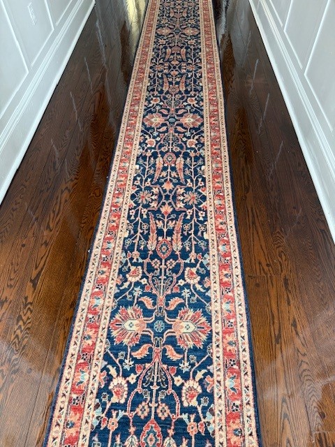 Humza Jafri sold this customer a classic Persian tree of life rug. The rug is rustic and has colors including navy, rust, blue and terracotta. The rug was made in Pakistan and is a throwback to the classic Persian designs of the 15th century.