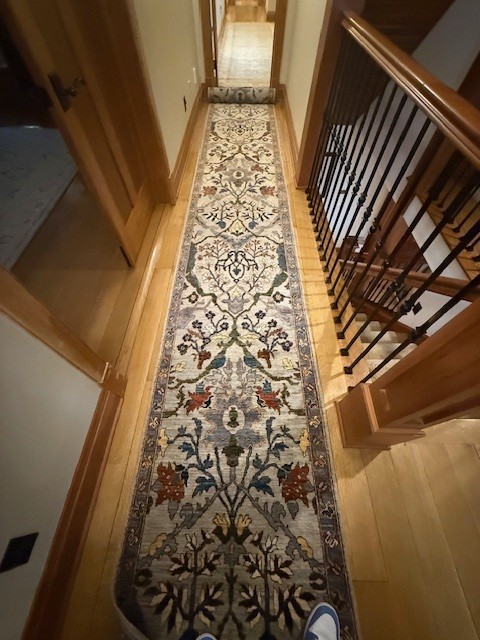 Humza Jafri sold this customer a beautiful 2'.10"x27.1' hallway runner. The rug was made in Pakistan and is a classic Garrus Bidjar rug. The rug was made with vegetable dyes including cornflower, sage, cornflower gold, indigo, and denim. The is densely knotted and is perfect for a floral aesethetic involving arts and crafts.
