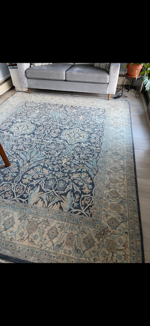 Humza Jafri sold this customer an 8x10 Ziegler rug. The rug is a classic William Morris design from the arts and crafts period. The rug has soft colors including French blue, beige, ivory and sand.